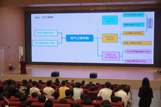 机电技术教研室赵淑娟教授在典礼中为新生开展专业认知教育。结合行业趋势与人才需求,勾勒专业学习蓝图,以生动案例展现电气领域魅力,引导新生树立专业自信。