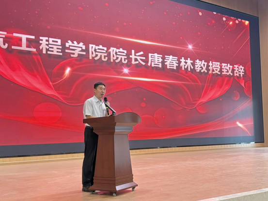 国歌声中,典礼启幕。院长唐春林代表学院向全体新生致以热烈欢迎,并寄予殷切寄语:“大学是逐梦殿堂,要以求知若渴的态度深耕专业,以敢为人先的勇气探索创新。”