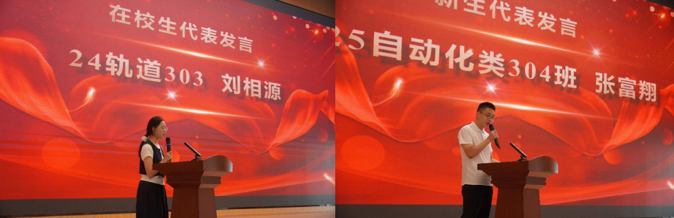 学生代表发言环节尽显青春活力。在校生代表结合自身成长经历,分享专业学习方法与校园实践心得,为新生提供鲜活参考;新生代表则以蓬勃朝气抒发对大学生活的期待与规划,真挚话语传递出昂扬向上的青春力量,感染着现场每一位师生。