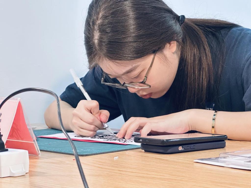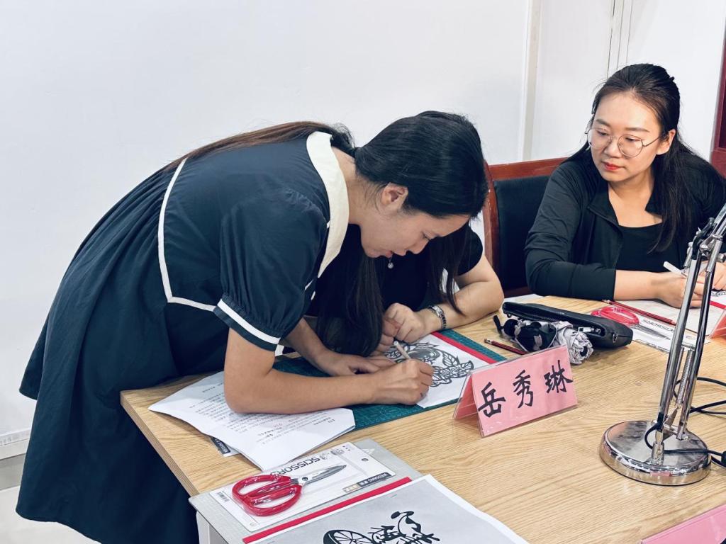 “一纸一剪藏文脉,一刀一刻蕴匠心。”沙龙伊始,设计学院非遗剪纸传承人周福容老师带来了精彩的剪纸教学。从剪纸的历史渊源、文化内涵,到基础技法的演示,周老师细致讲解每一个步骤,手把手指导在场辅导员。大家手持剪刀与红纸,在指尖的翻飞中,感受着传统剪纸艺术的独特魅力。辅导员们全神贯注,在专注创作的过程中,不仅体会到非遗技艺的精妙,更领悟到其中蕴含的耐心、专注与精益求精的匠人精神,而这种精神恰与辅导员“春风化雨、润物无声”的育人理念高度契合。