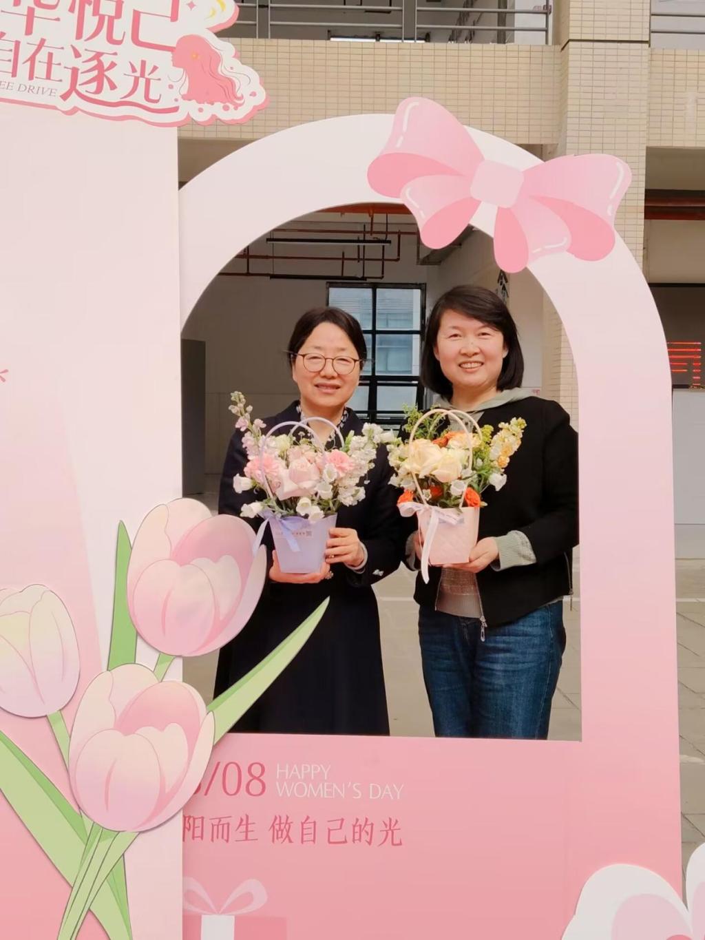 一件件错落有致、独具匠心的插花作品陆续完成,女教职工们手捧鲜花合影留念,定格美好瞬间。此次活动不仅让大家感受到花艺之美,舒缓了工作压力,更凝聚了巾帼力量,增强了学院团队归属感。大家纷纷表示,将带着这份美好与温暖,坚守育人初心,立足岗位实干,为学院高质量发展贡献更多巾帼智慧与力量。