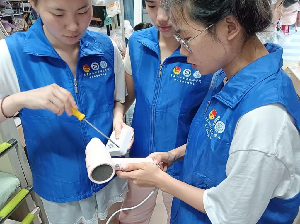 学院电器维修协会志愿者深入学生宿舍,开展安全用电专项排查,重点检查违规电器、线路老化、私拉乱接等问题,现场讲解安全用电常识,协助整改安全隐患,以专业力量守护宿舍安全。